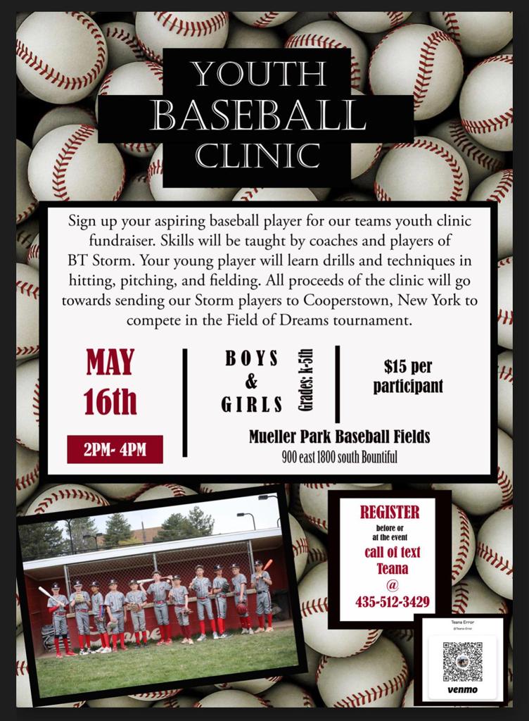 Youth Baseball Clinic on Friday May 16th